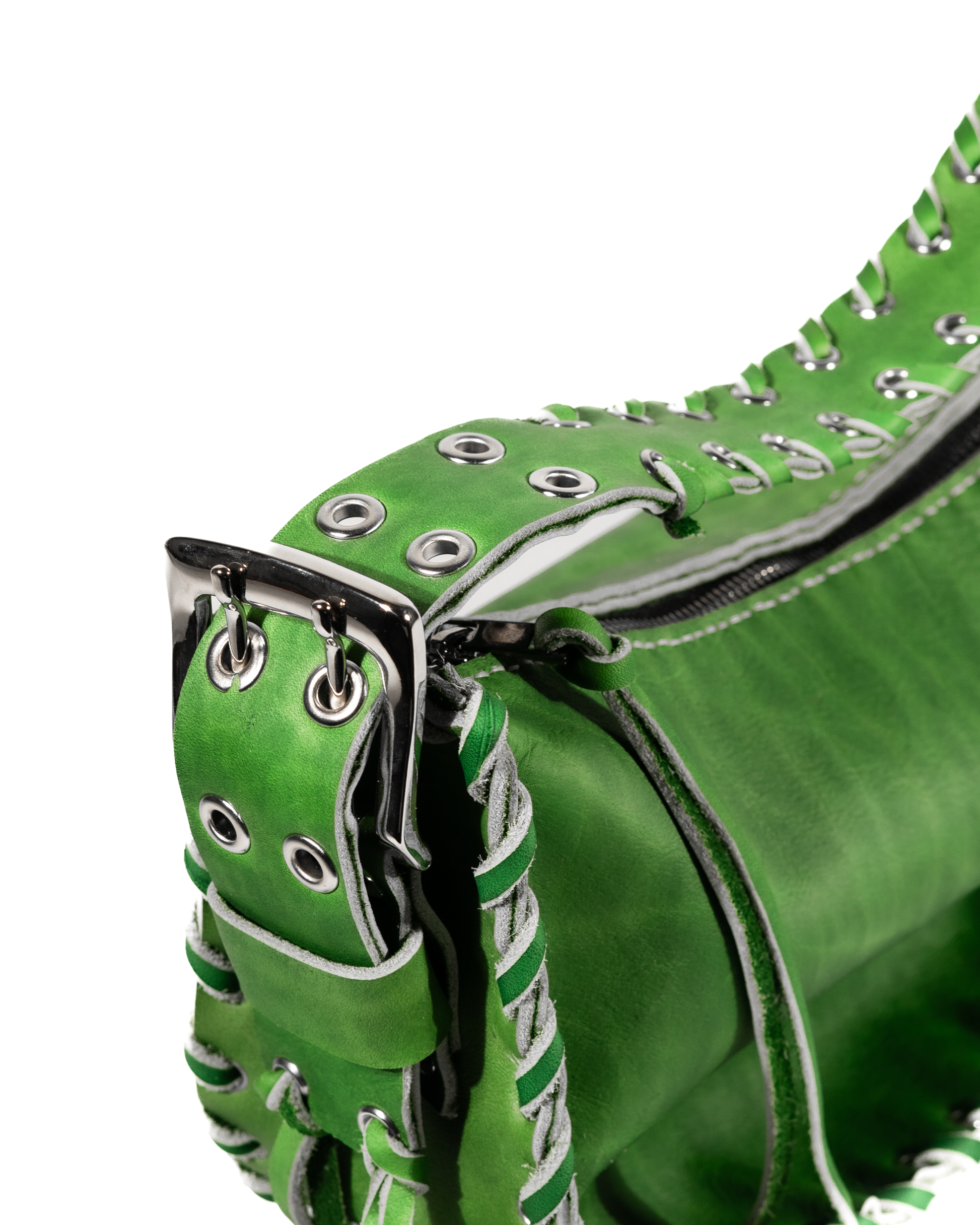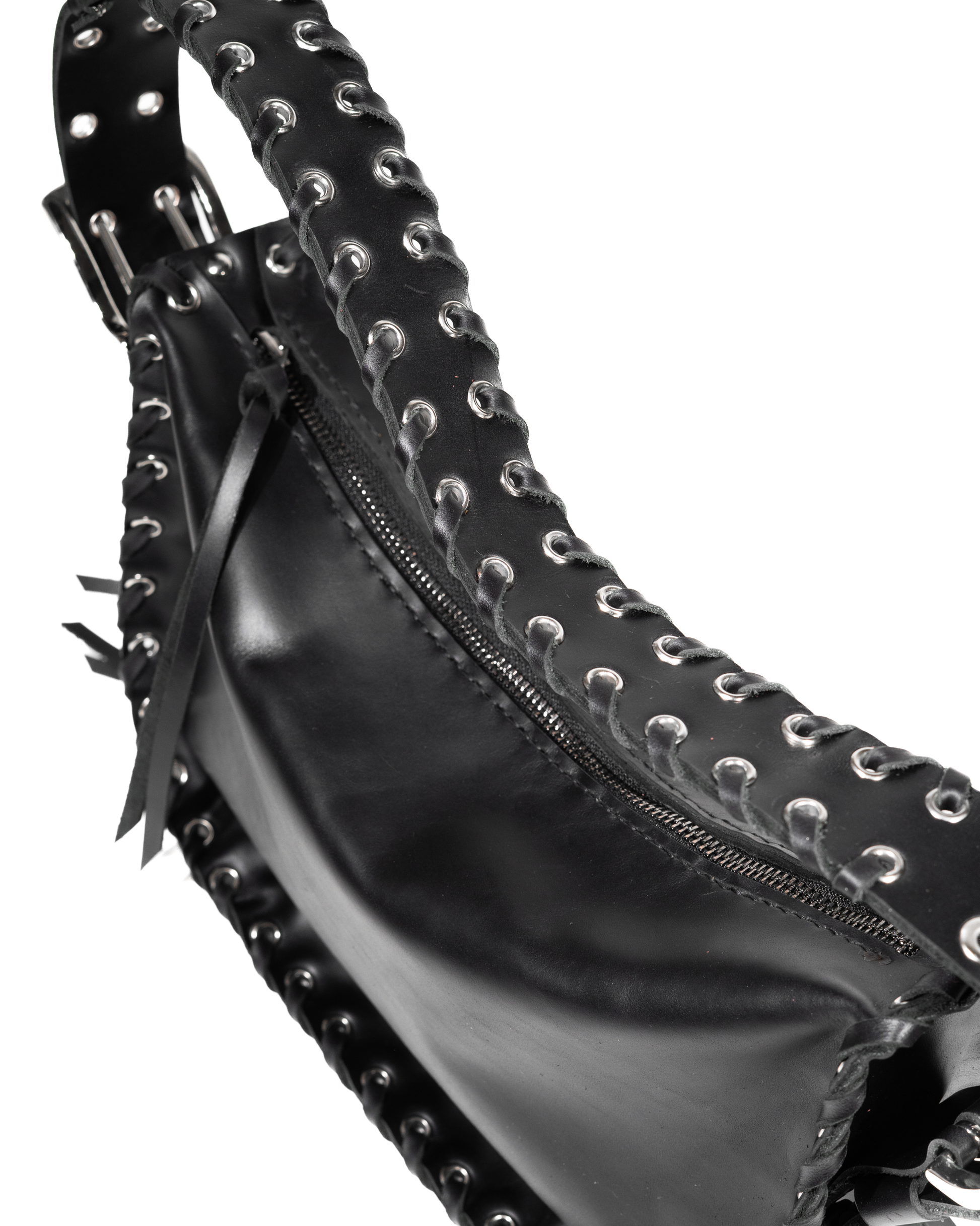 • Silver stud and eyelet accents