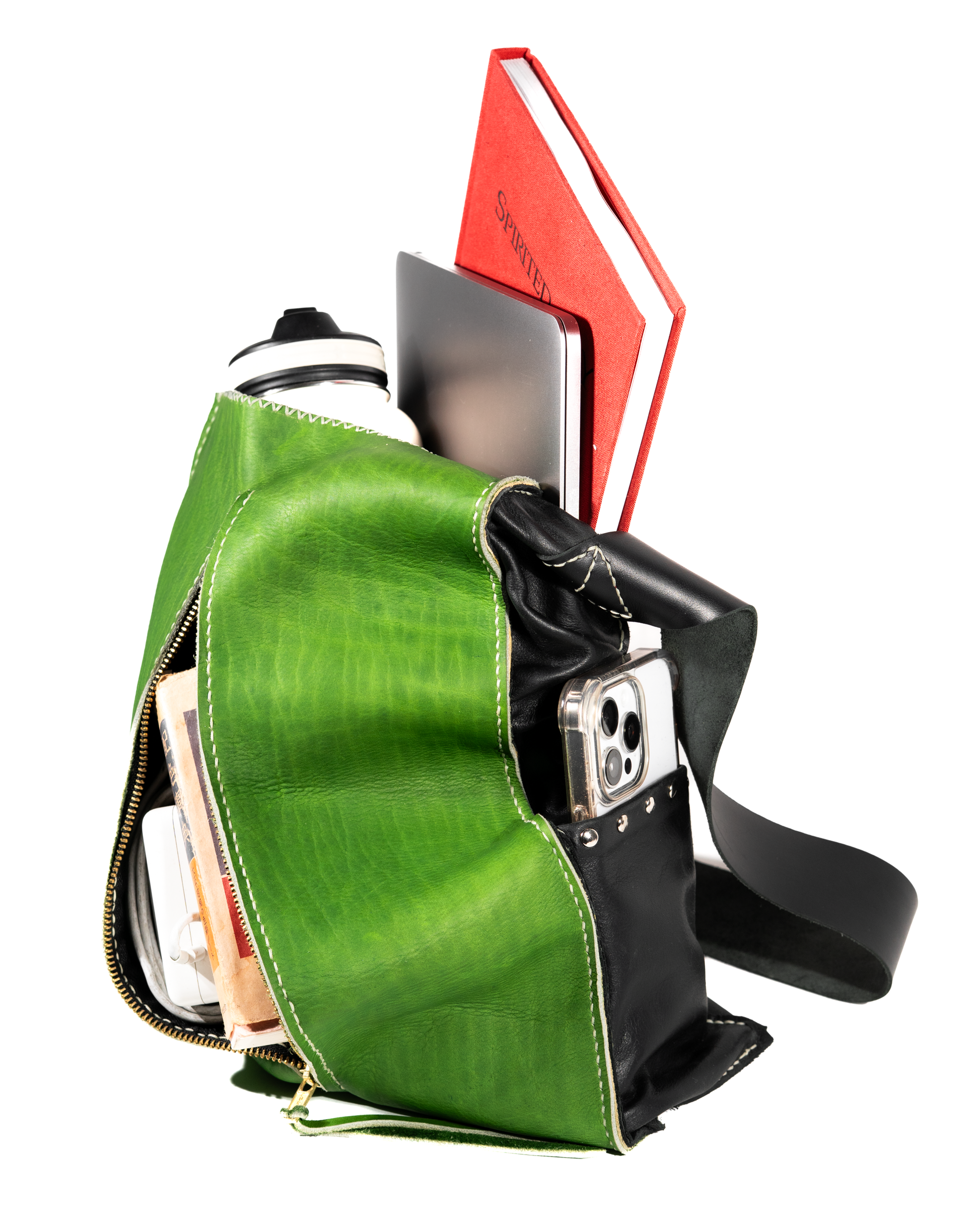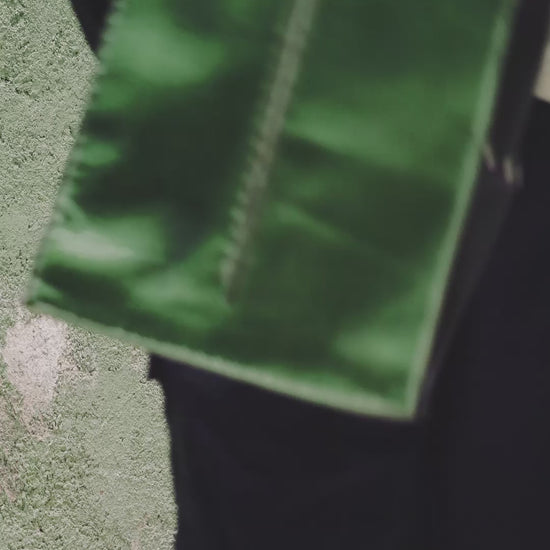 • Green cowhide napa leather + black chrome-tanned leather