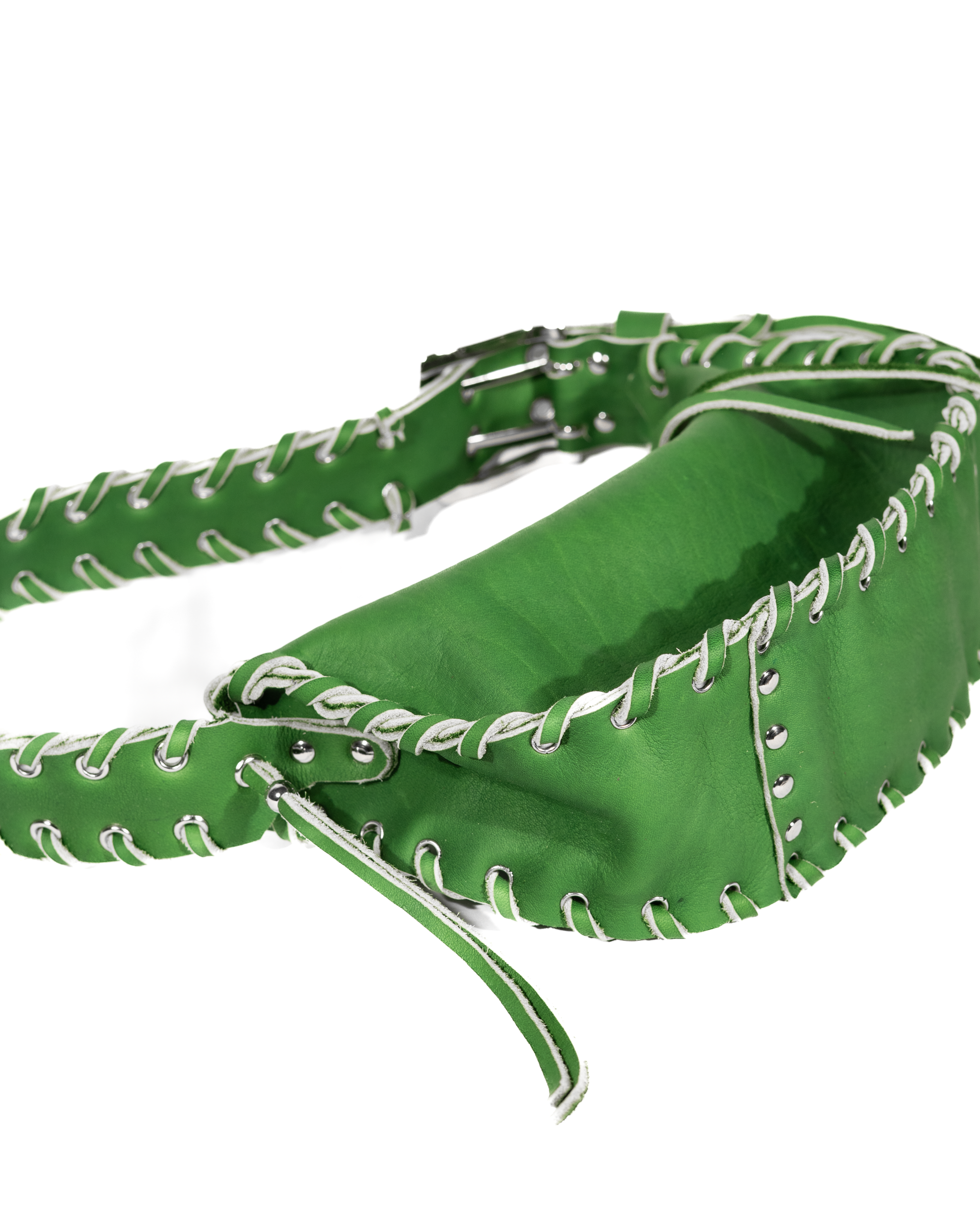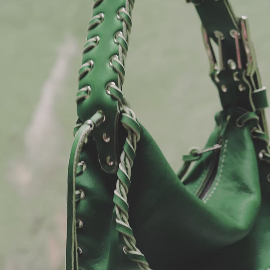 Hecha con cuero napa de res color verde (grosor: 1.9–2.1 mm). El cuero napa es un cuero conocido por ser suave, flexible y liso. Se curte con sales de cromo y conserva la textura natural de la piel.